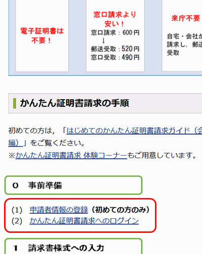 2.かんたん証明書請求へのログイン