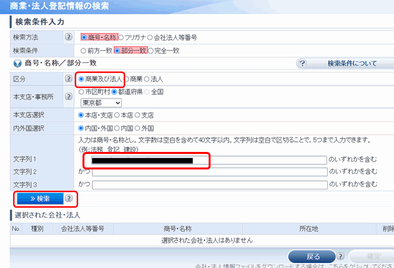 ※「区分」の欄、「商業及び法人」にチェックマークを入れるのが無難